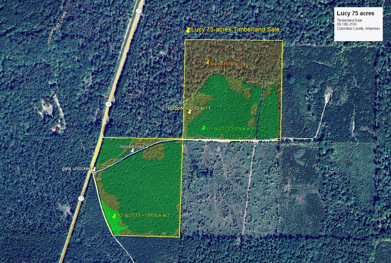 266-acres 3-miles southwest of Dierk, Arkansas, home to the largest pine sawmill in USA (250-loads/day).